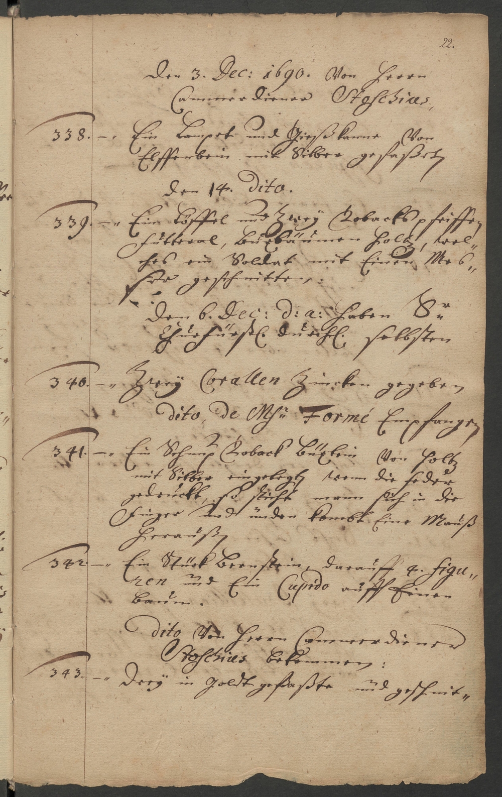 Den 3. Dec: 1690. Von Herrn Cammerdiener Stoschius [...]