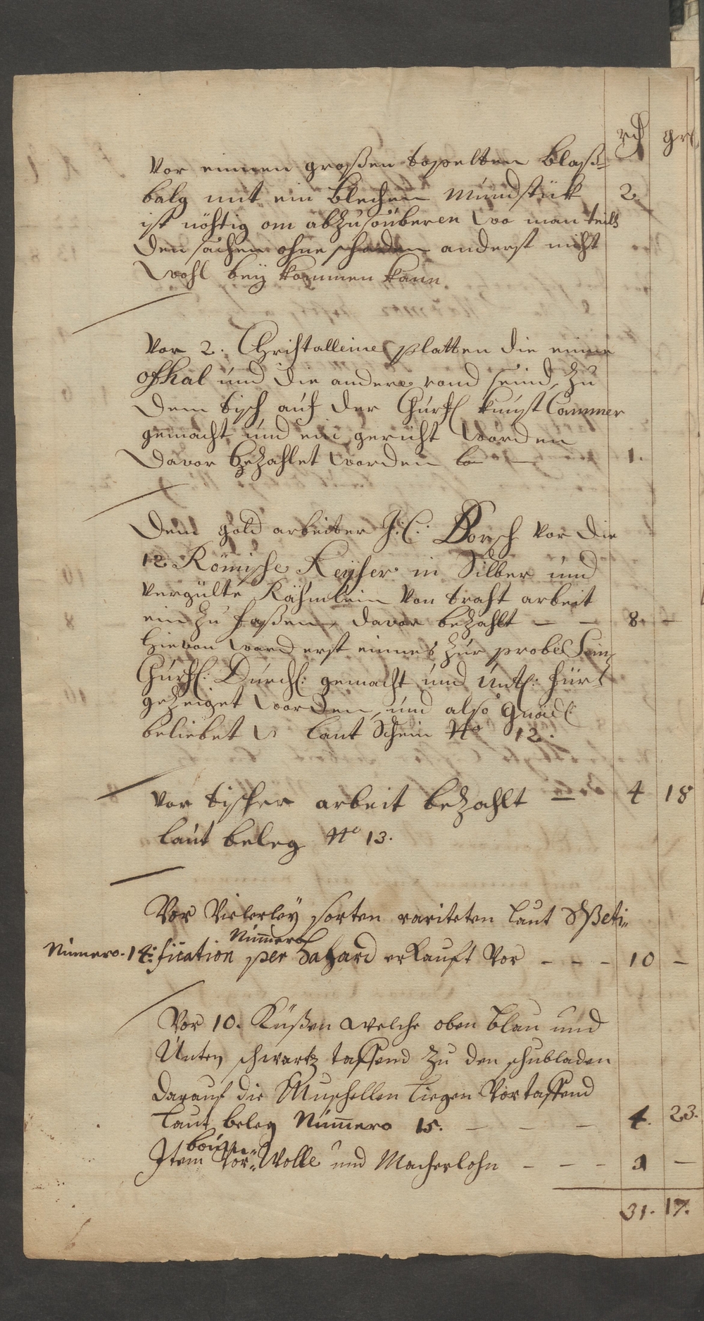 Vor 2. Christalleine platten die einen / othal [oval?] und die andere rund seind, zu / dem tisch auf der Churf. Kunst Cammer / gemacht und neu gericht worden / davor bezahlt worden l[…]