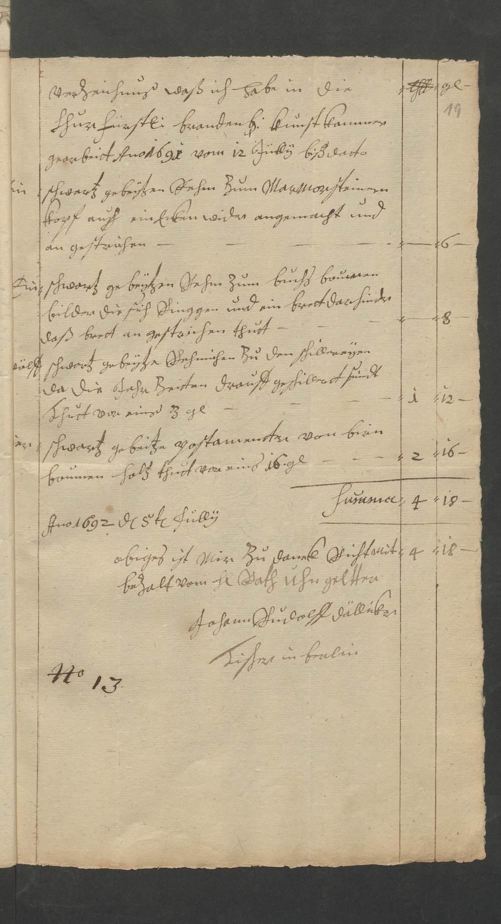obiges ist mir zu danck richt. mit 4 [Thl.] - 8 [Gr.]