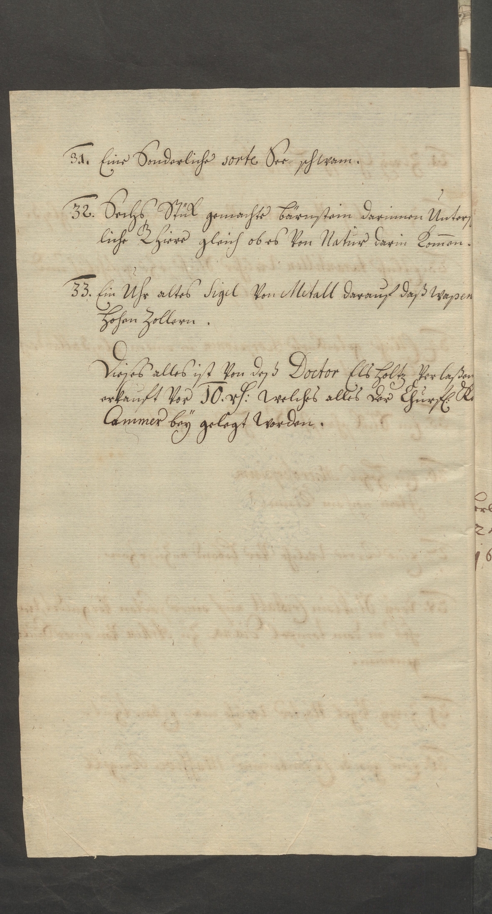 Dieses alles ist von deß Doctor Elbholtz Verlaße[nschaft] [Blattrand unleserlich]/ erkauft vor 10. [50?] r. welches alles der Chur./ Cammer bey gelegt worden.