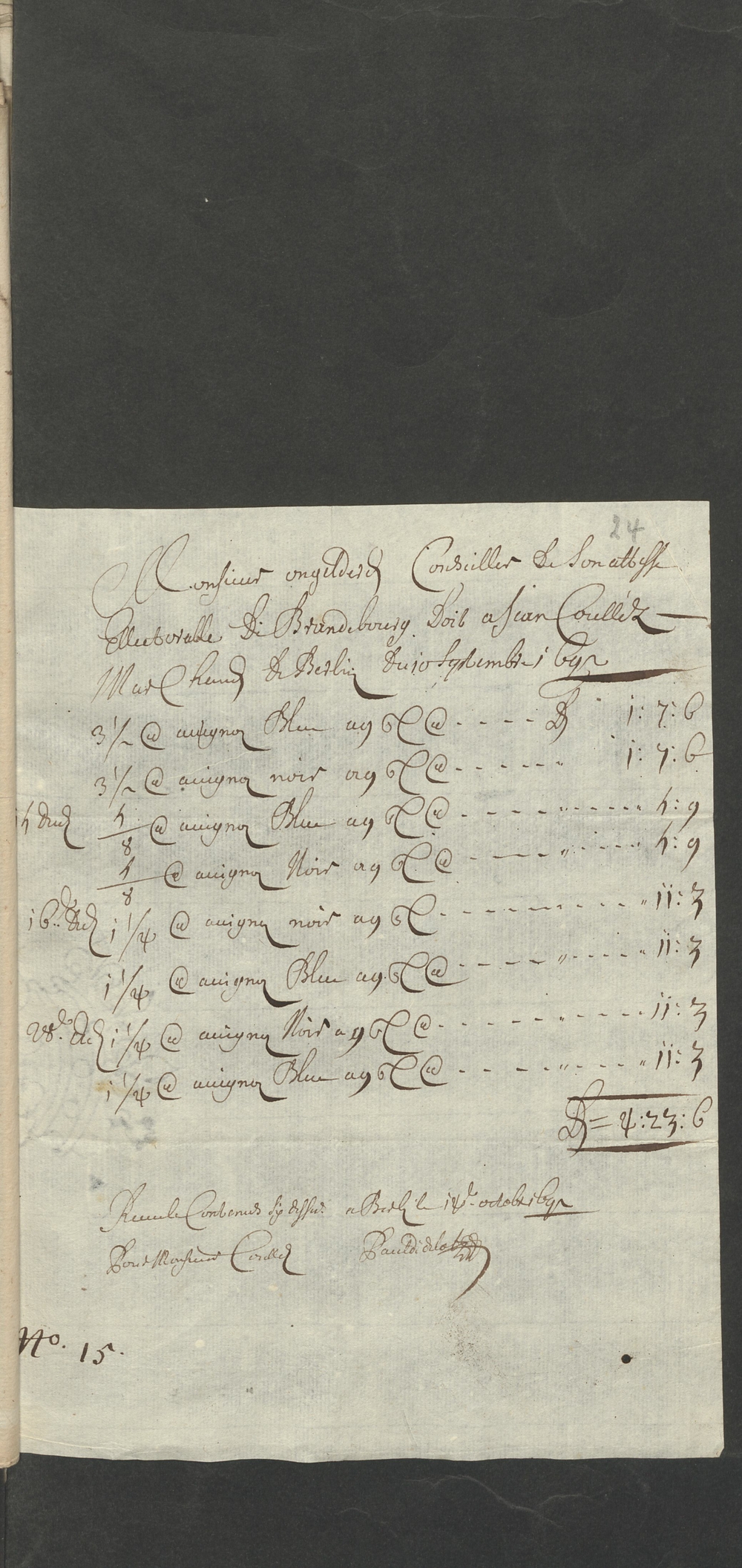 1 1/4 Pfund avignon noir a 9 Gr. [das] Pfund ---- " ----- ‘‘ 11: 3