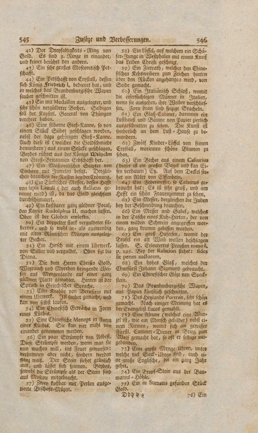 Diese Strümpfe werden, wenn man sie rein machen will, ins Feuer geworfen: verbrennen aber nicht, sondern werden ganz weiß. Der Stein siehet grünlich aus, und lässet sich spinnen. Beydes, sowohl die Strümpfe als der Stein sind aus Moscau mitgebracht.