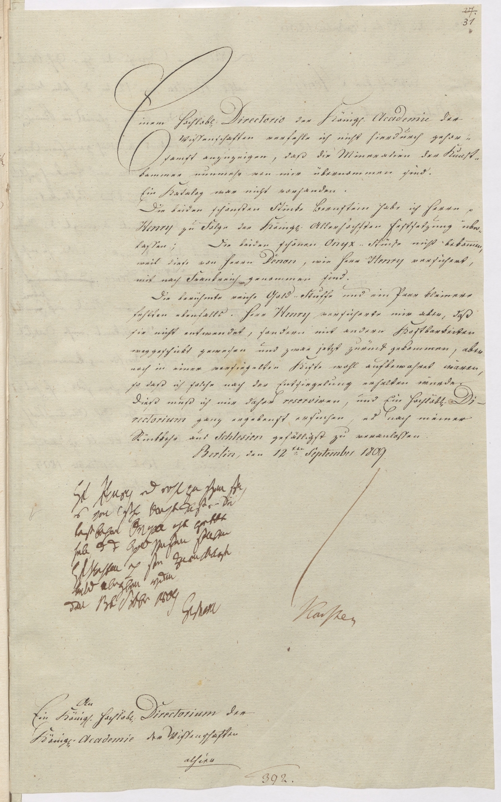 Berlin, den 12ten September 1809