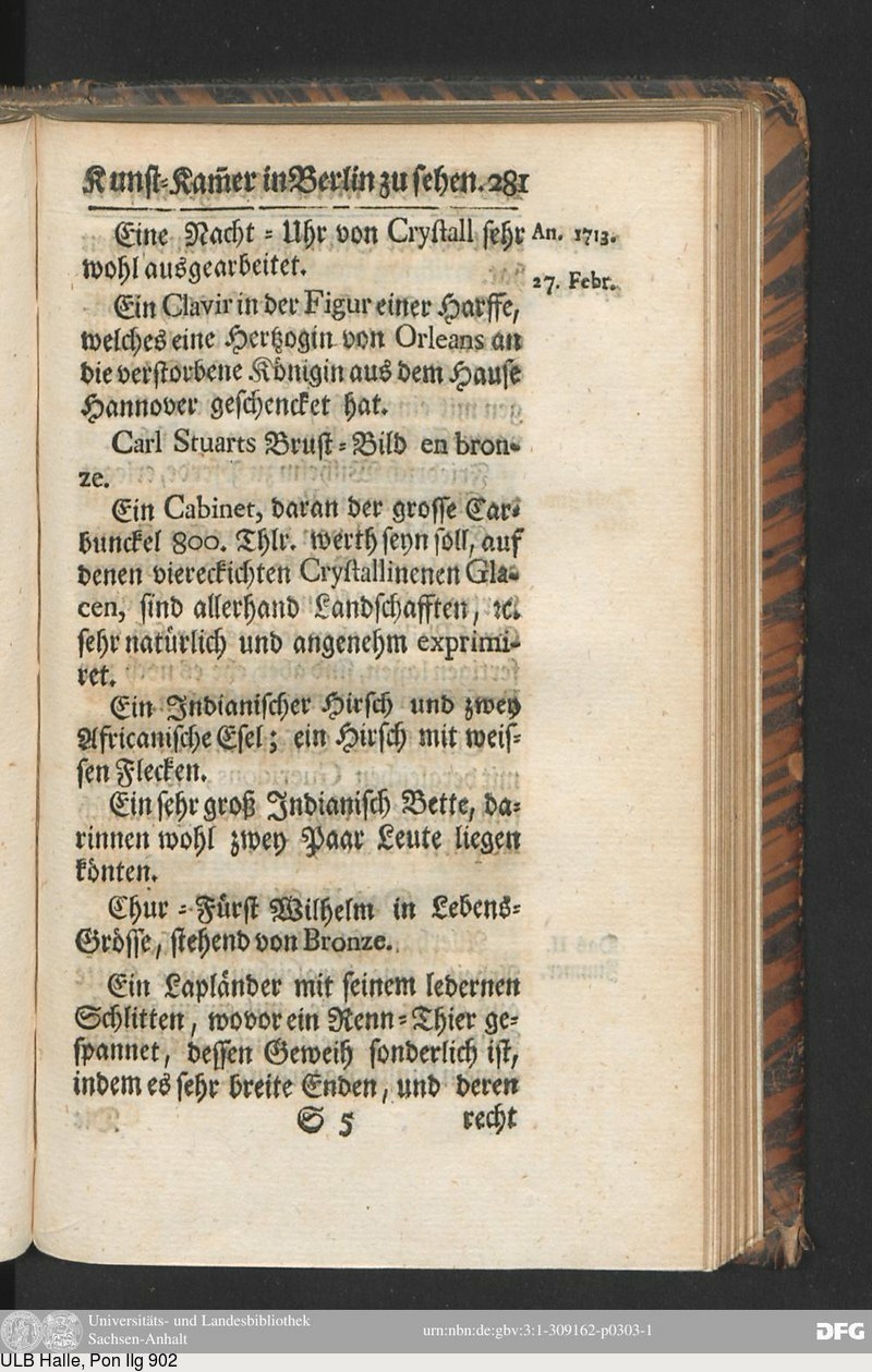 die verstorbene Königin aus dem Hauſe Hannover geschencket hat.