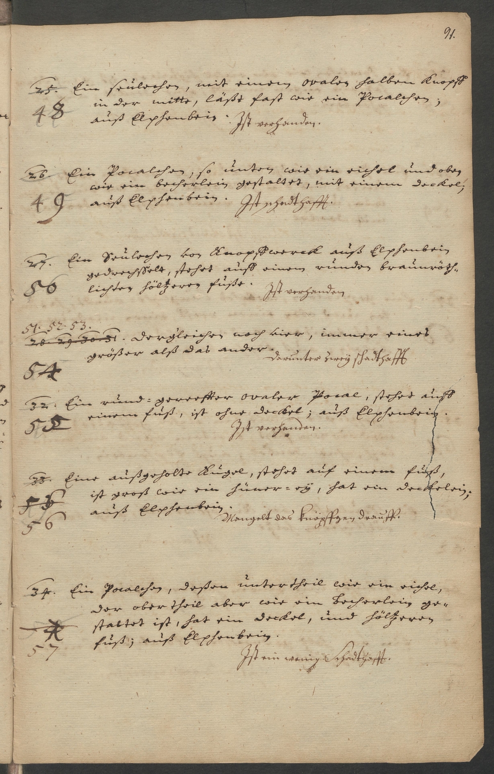 28. 29. 30. 31. 51. 52. 53. 54 dergleichen noch vier, immer eines/ größer als das ander./ Darunter zwey schadthafft./