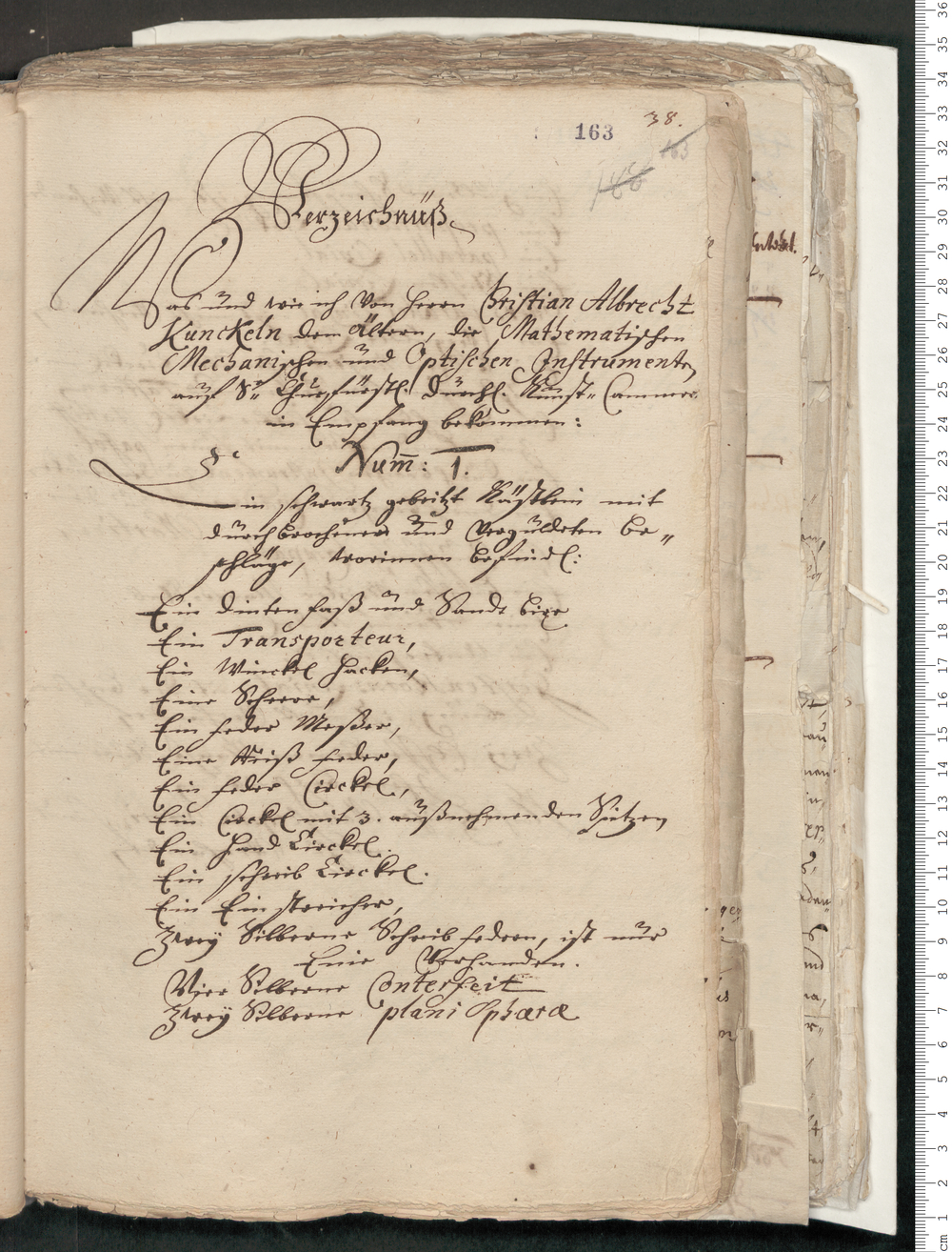 Was und wie ich von Herrn Christian Albrecht/ Kunckeln dem älteren, die Mathematischen/ Mechanischen und Optischen Instrumenten,/ auf Sr. Churfüstl. Durchl. Kunst=Cammer/ in Empfang bekommen:/