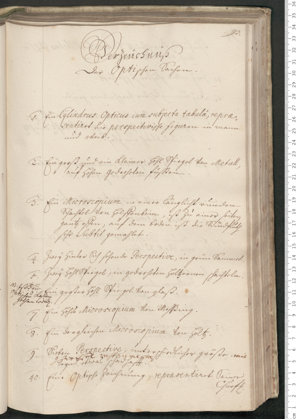 [am linken Rand, in gleicher Hand:] N.B. Ist in den/ Optischen Kasten/ gethan word[en]./