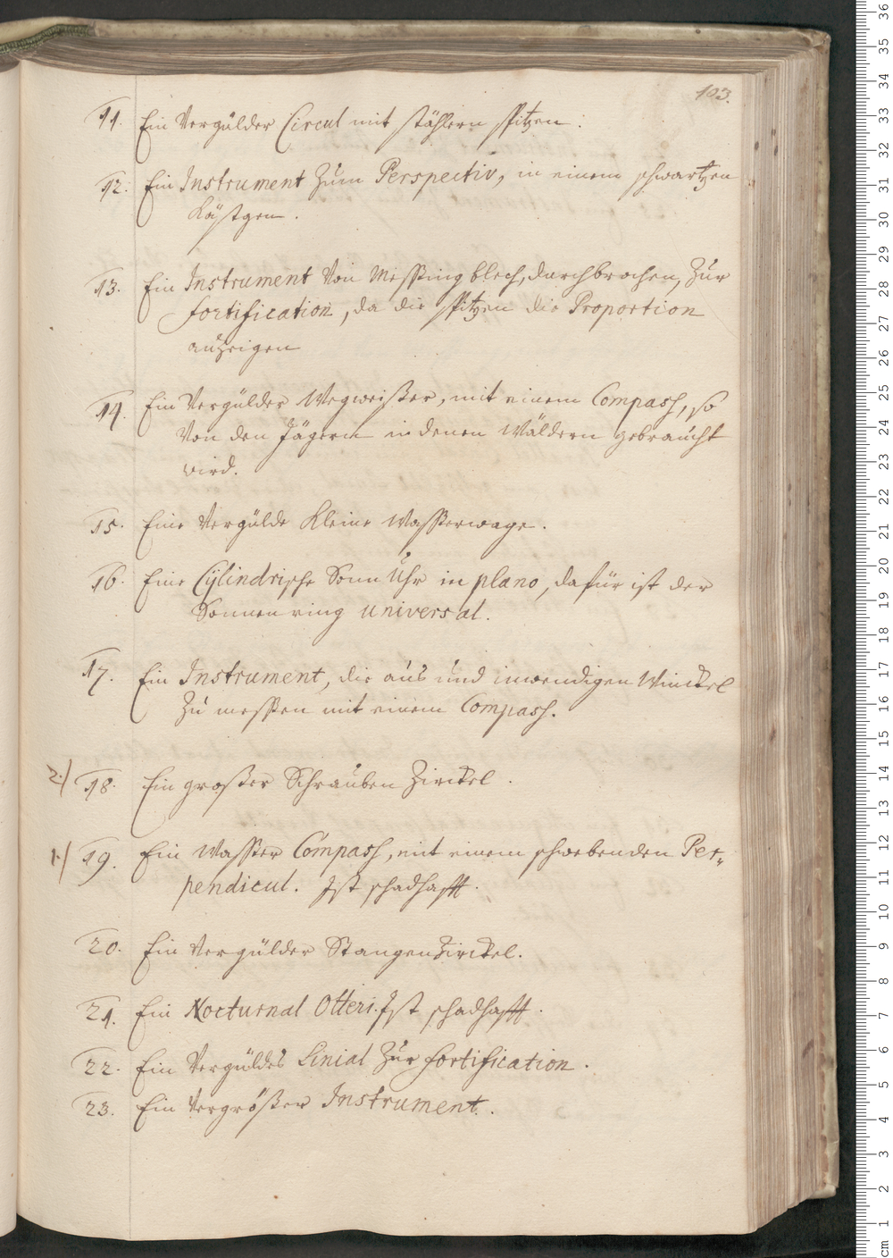 13. Ein Instrument von Messing blech, durchbrochen, zur/ Fortification, da die spitzen die Proportion/ anzeigen/