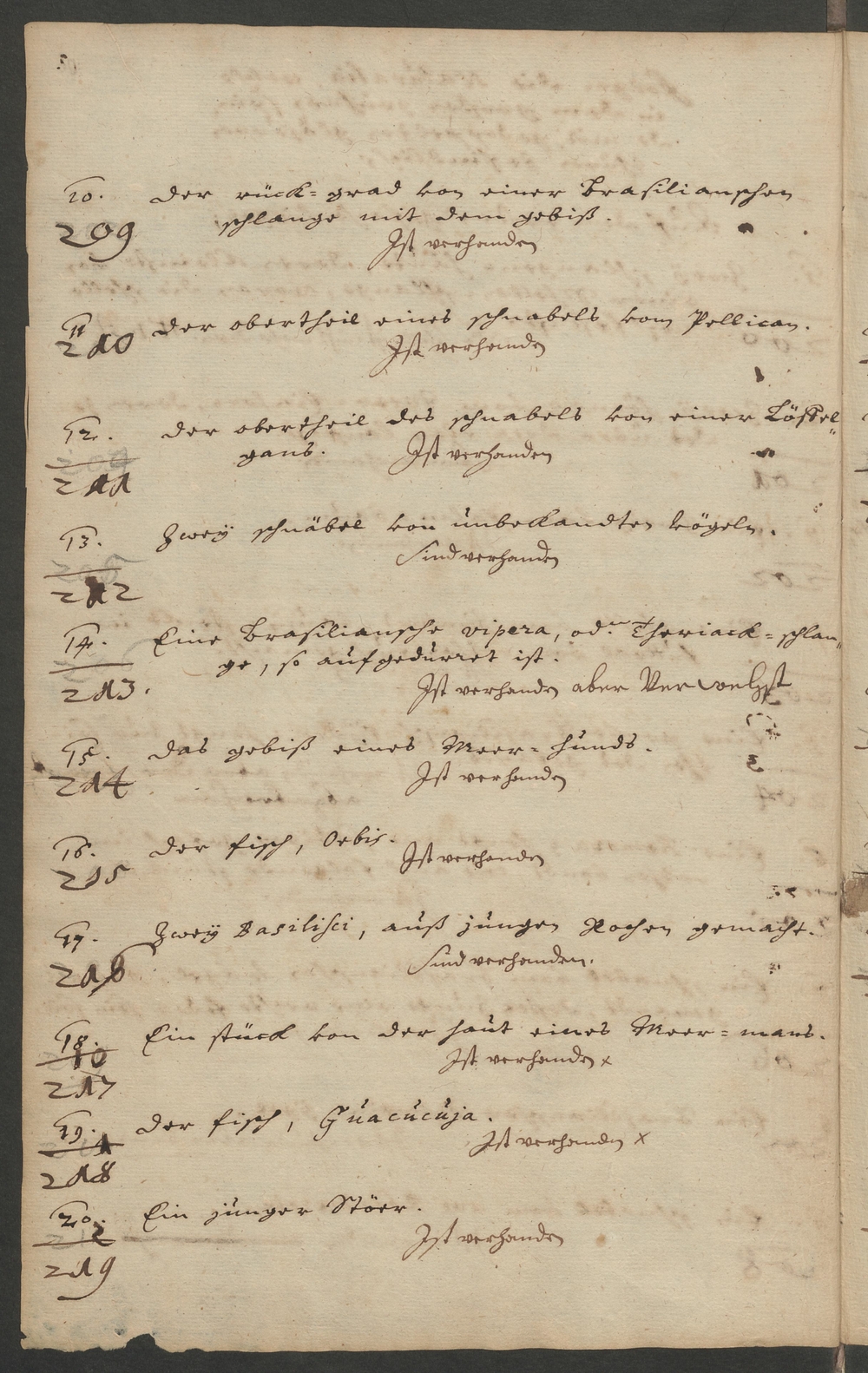 14. 206 213 Eine Brasiliansche vipera, od. Eferiack=schlan=/ge, so ausgedürret ist./ Ist vorhanden aber Ver[…]/