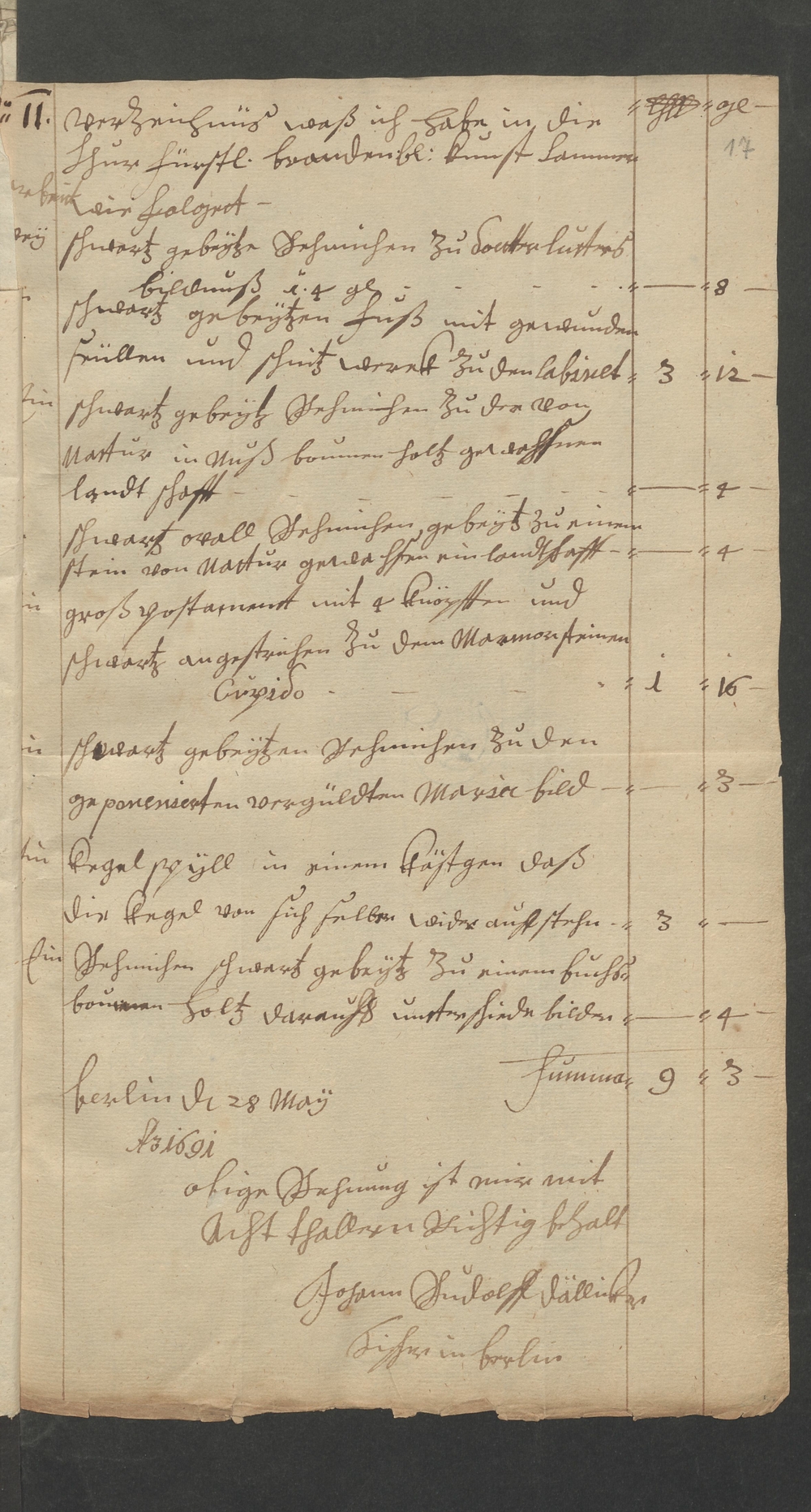 [Nr.]11. Verzeichnus, waß ich habe in die