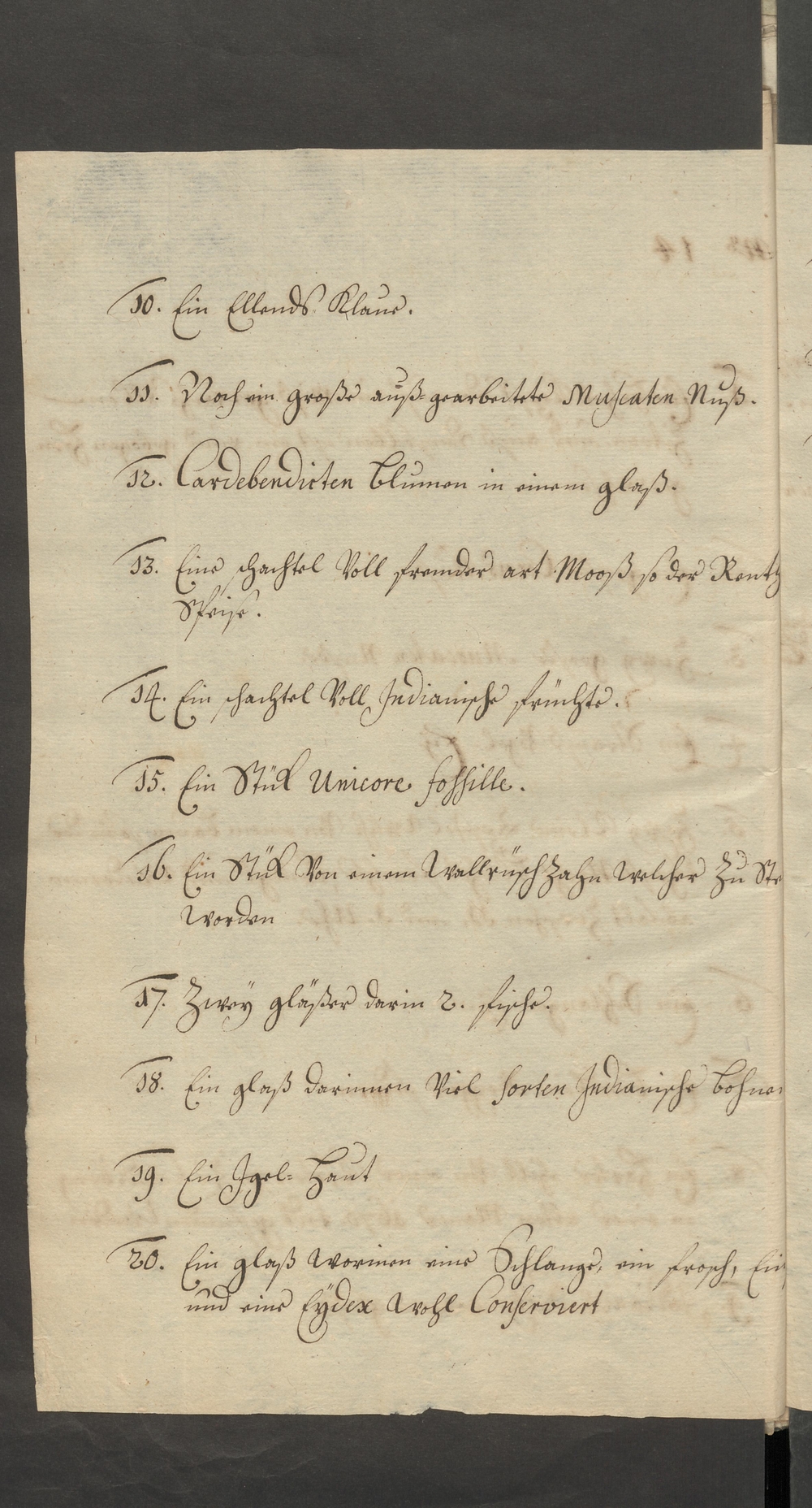 20. Ein Glaß worin[n]en eine Schlange, ein Frosch, E[…] [Blattrand unleserlich] / und eine Eydex wohl / conserviert