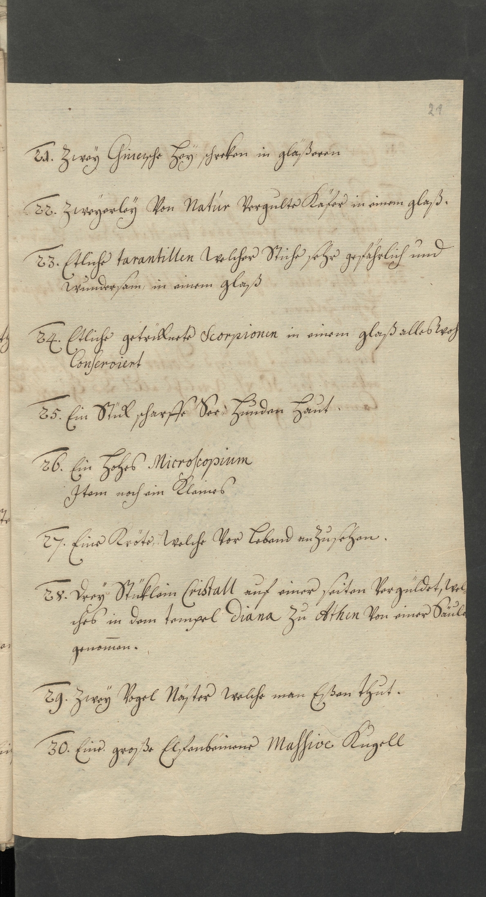 28. Drey Stücklein Cristall auf einer seiten vergüldet, wel- / ches in dem tempel Diana zu Athen / von einer Säule / genommen./