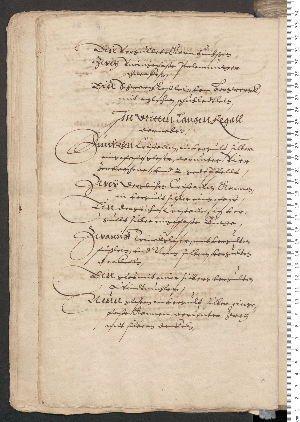 ein dergleichen cristallen in vor=/gullt silber eingefaste butte,/