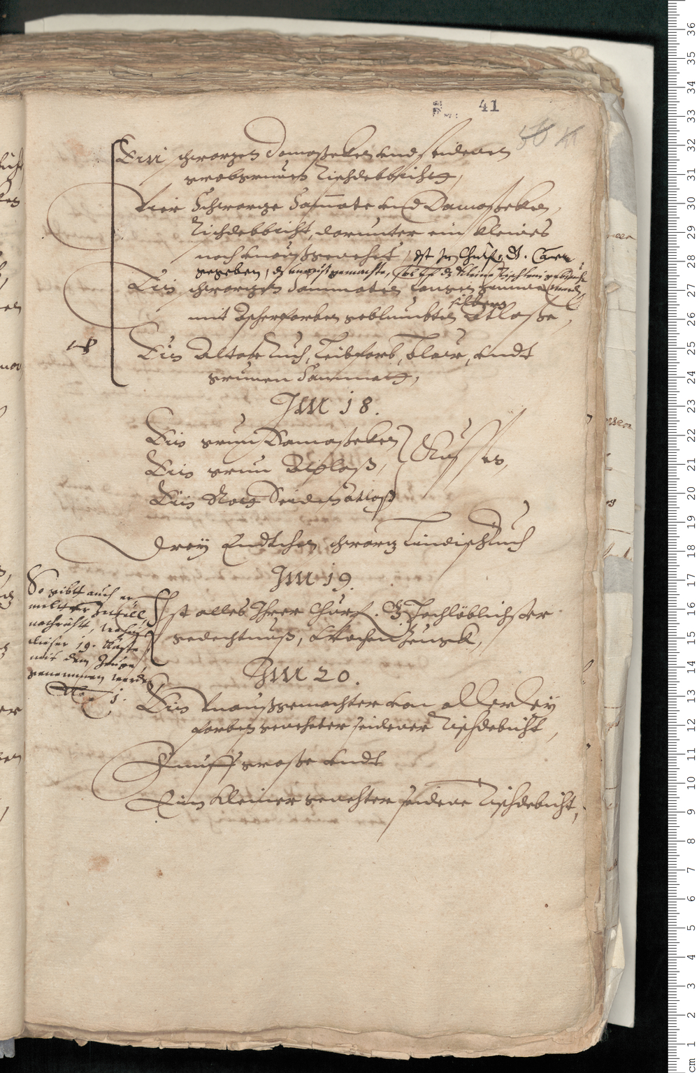 [links daneben, von anderer Hand:] so gibtt auch er=/meltt der zettell,/ nachrichtt, wohin/ dieser 19. kaste,/ mit dem zeuge,/ genommen worden,/ no [...] 1./