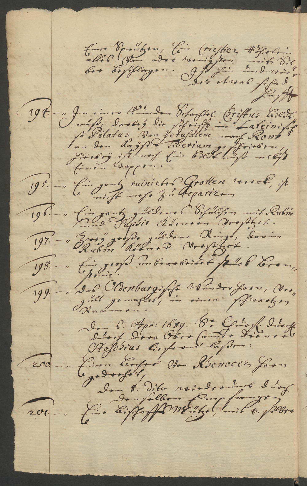 Den 6. Apr: 1689. Sr. Churfürstl. Durchl./