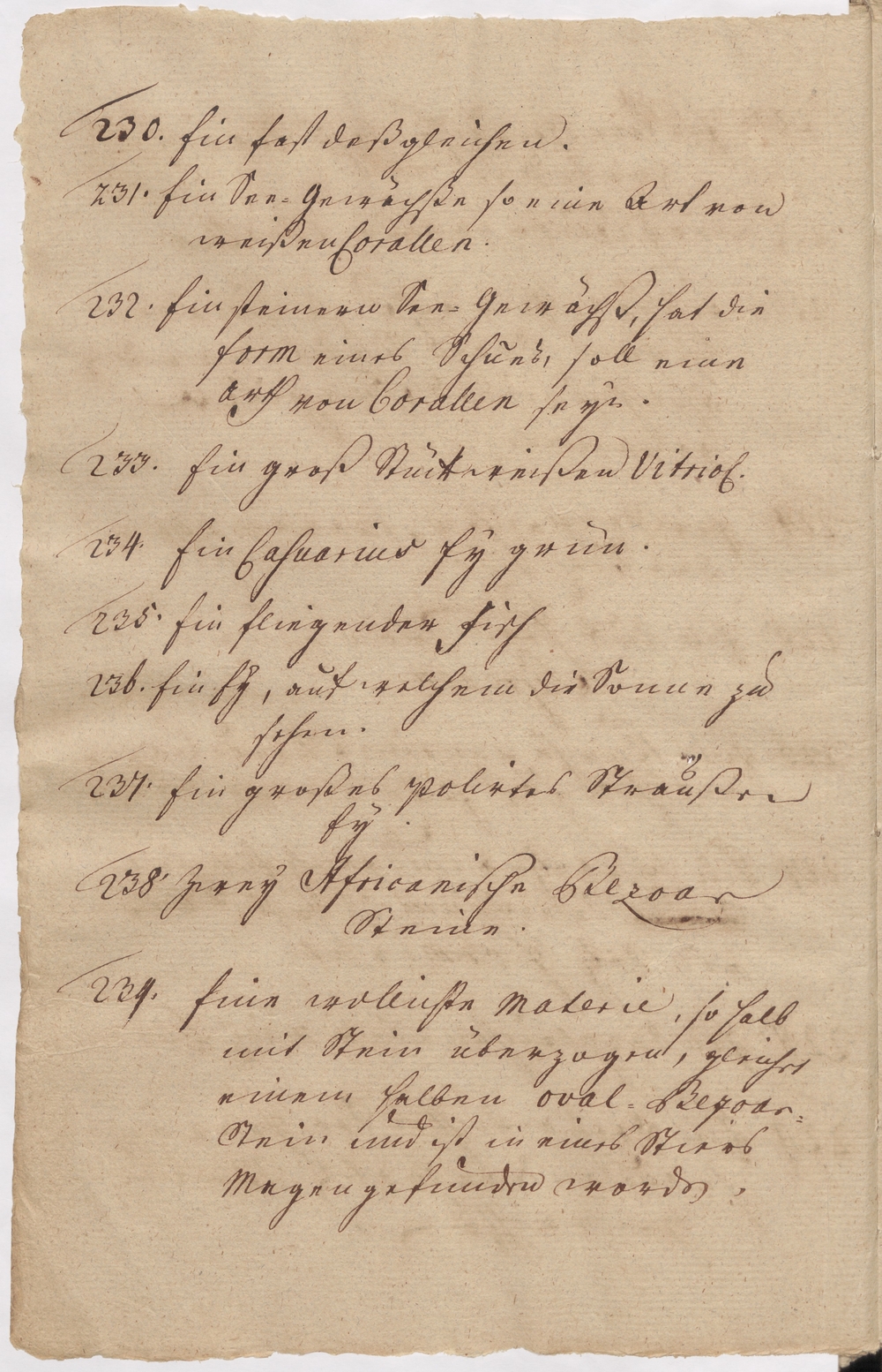 239. Eine wollichte Materie, so halb/ mit Stein überzogen, gleichet/ einem halben oval-Bezoar=/ Stein und ist in eines Stiers/ Magen gefunden worden.