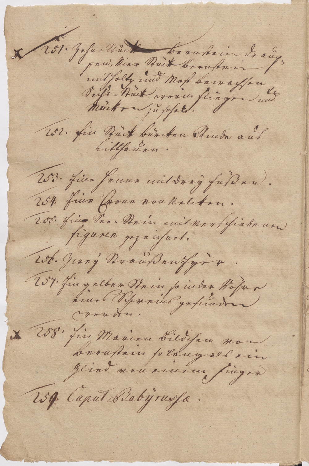 x 251. Zehn Stück Bernstein draup-/ pen, vier Stück bernstein/ mit holtz und Moß bewachsen/ sechs Stück worin fliegen und/ Mücken zu sehen./