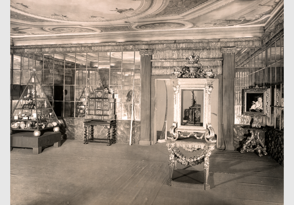Dieses Foto von Gustav Schwarz zeigt die Rekonstruktion der sog. Naturalienkammer (Raum 990) auf der Ausstellung Altes Berlin - Fundamente der Weltstadt, die vom 23. Mai bis 3. August 1930 auf dem Berliner Funkturmgelände stattfand. Digitalisat vorhanden.