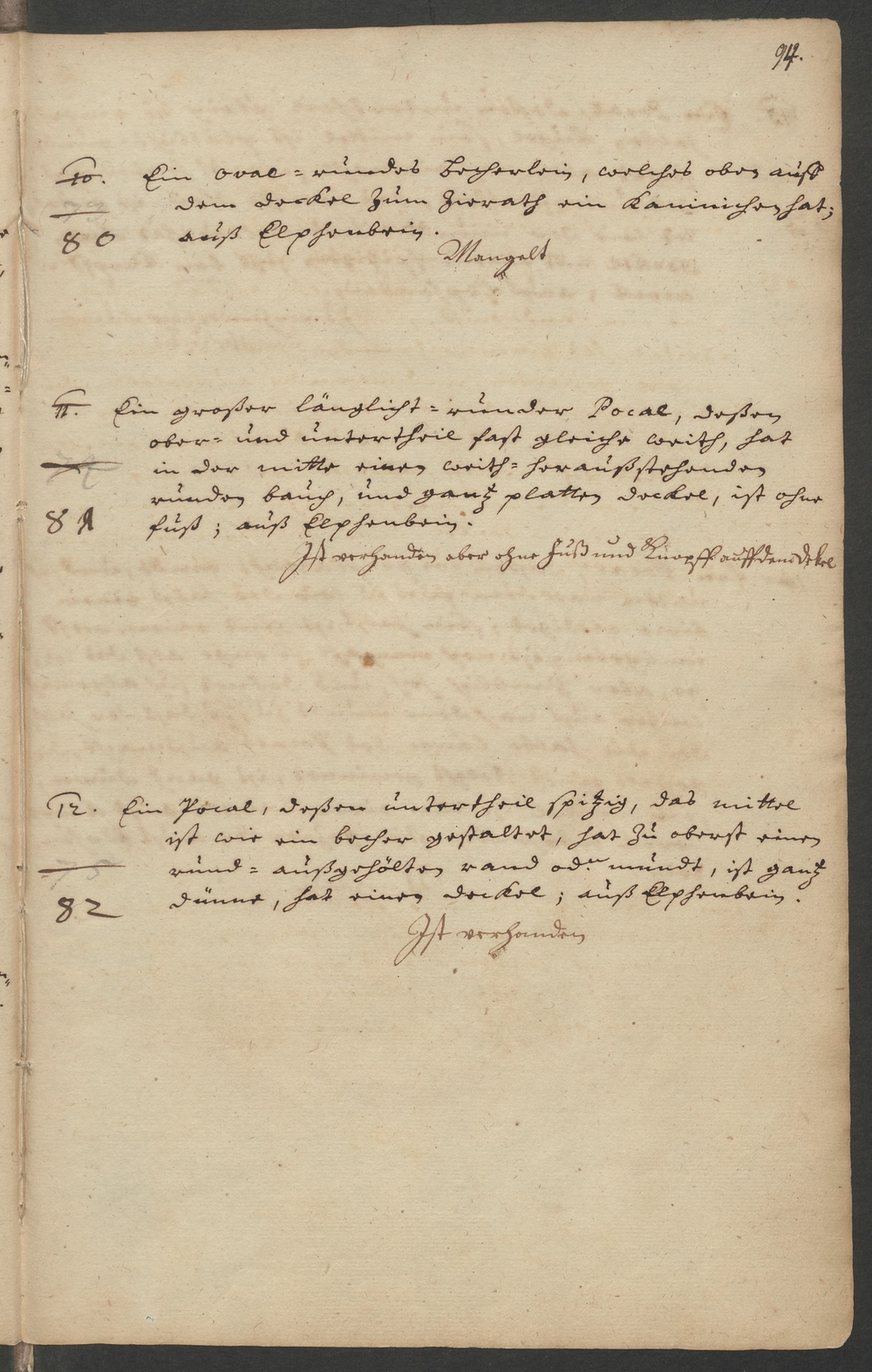 12. 75 82 Ein Pocal, deßen untertheil spitzig, das mittel/ ist wie ein becher gestaltet, hat zu oberst einen/ rund=außgehölten rand od. mundt, ist gantz/ dünne, hat einen Deckel; auß Elphenbein./