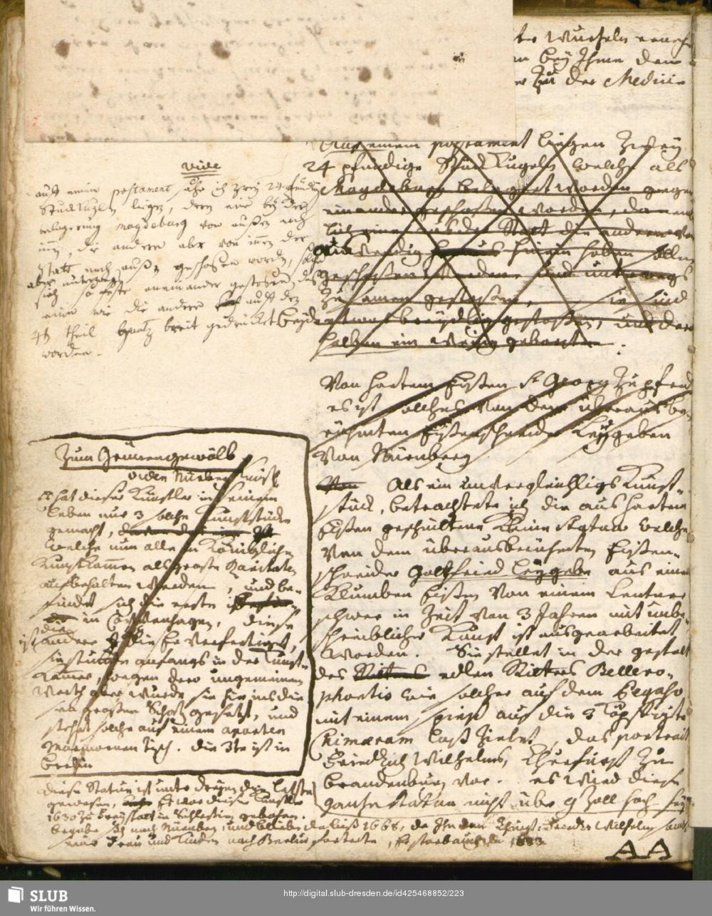 Als ein unvergleichliches Kunststück, betrachtete ich die aus hartem Eißen geschnittene kleine Statua welche von dem überaus berühmten Eißenschneider Gottfried Leygebe aus einem Klumben Eißen von einem Centner schwer in Zeit von 3 Jahren mit unbeschreiblicher Kunst ist ausgearbeitet worden. Sie stellet in der gestalt des Ritters edlen Ritters Bellerophontio wie solcher auf dem Begaso mit einem Spieß auf die 3 Köpfigte Chimaeram loß zielet, das portrait Friedrich Wilhelms, Churfürst zu Brandeburg vor. es wird diese gantze Statue nicht über 9 Zoll hoch seyn Diese Statue ist unter dreyn die beste gewesen [...]
