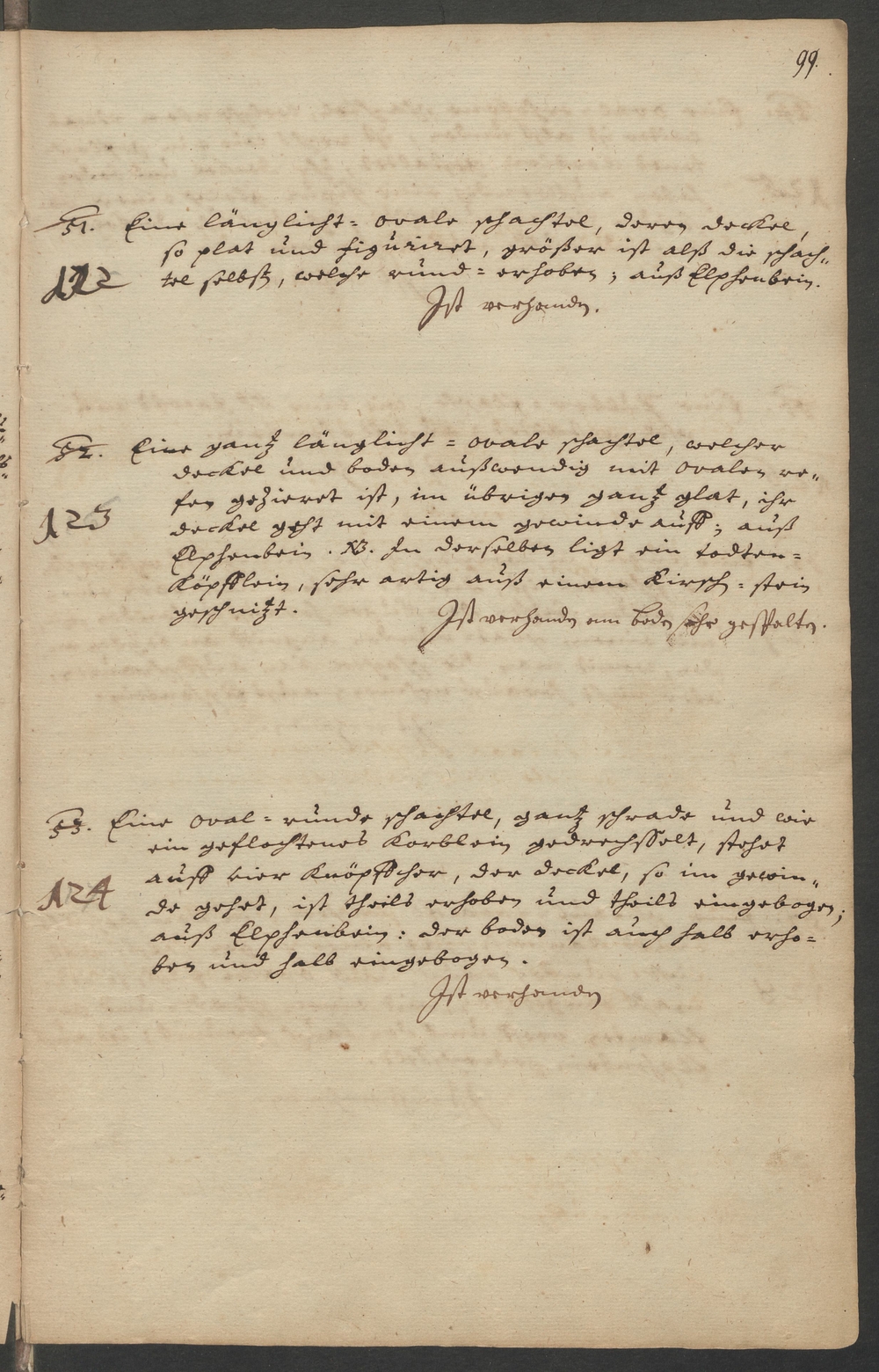 53.117 124 Eine oval-runde schachtel, gantz schrade und wie/ ein geflochtenes korblein gedrechsselt, stehet/ auff vier knöpffcher, der deckel, so im gewin=/de gehet, ist theils erhoben und theils eingebogen;/ auß Elphenbein. der Boden ist auch halb erho=/ben und halb eingebogen./ Ist vorhanden