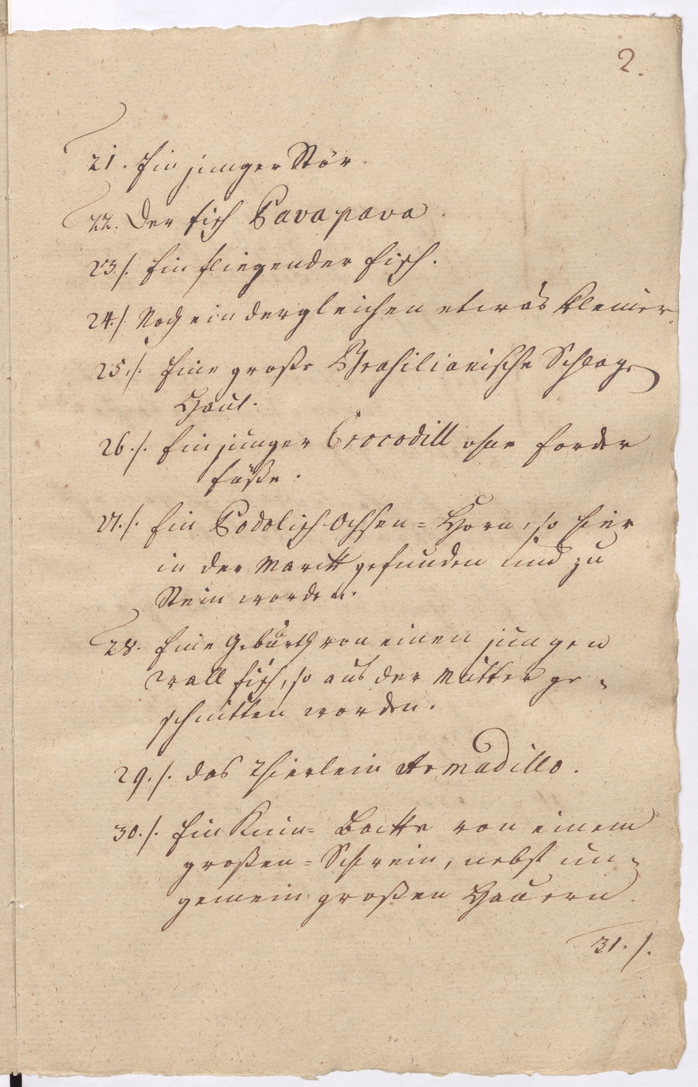 30. Ein Kinn-Backe von einem/ großen-Schwein, nebst un-/gemein großen Hauern.