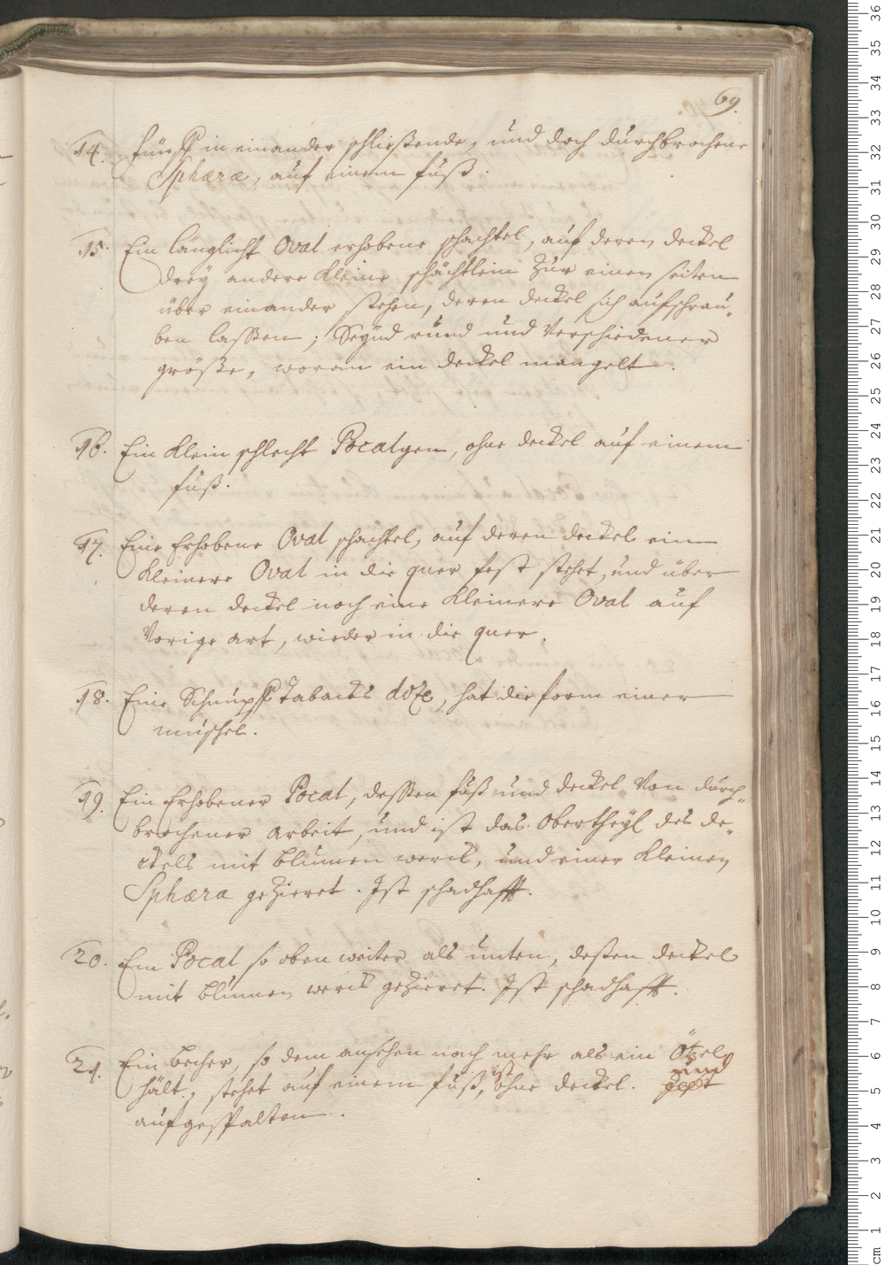 17. Eine Erhobene oval schachtel, auf deren Deckel ein/ kleinere Oval in die quer fest stehet, und über/ deren Deckel noch eine kleinere Oval auf/ Vorige art, wieder in die quer./