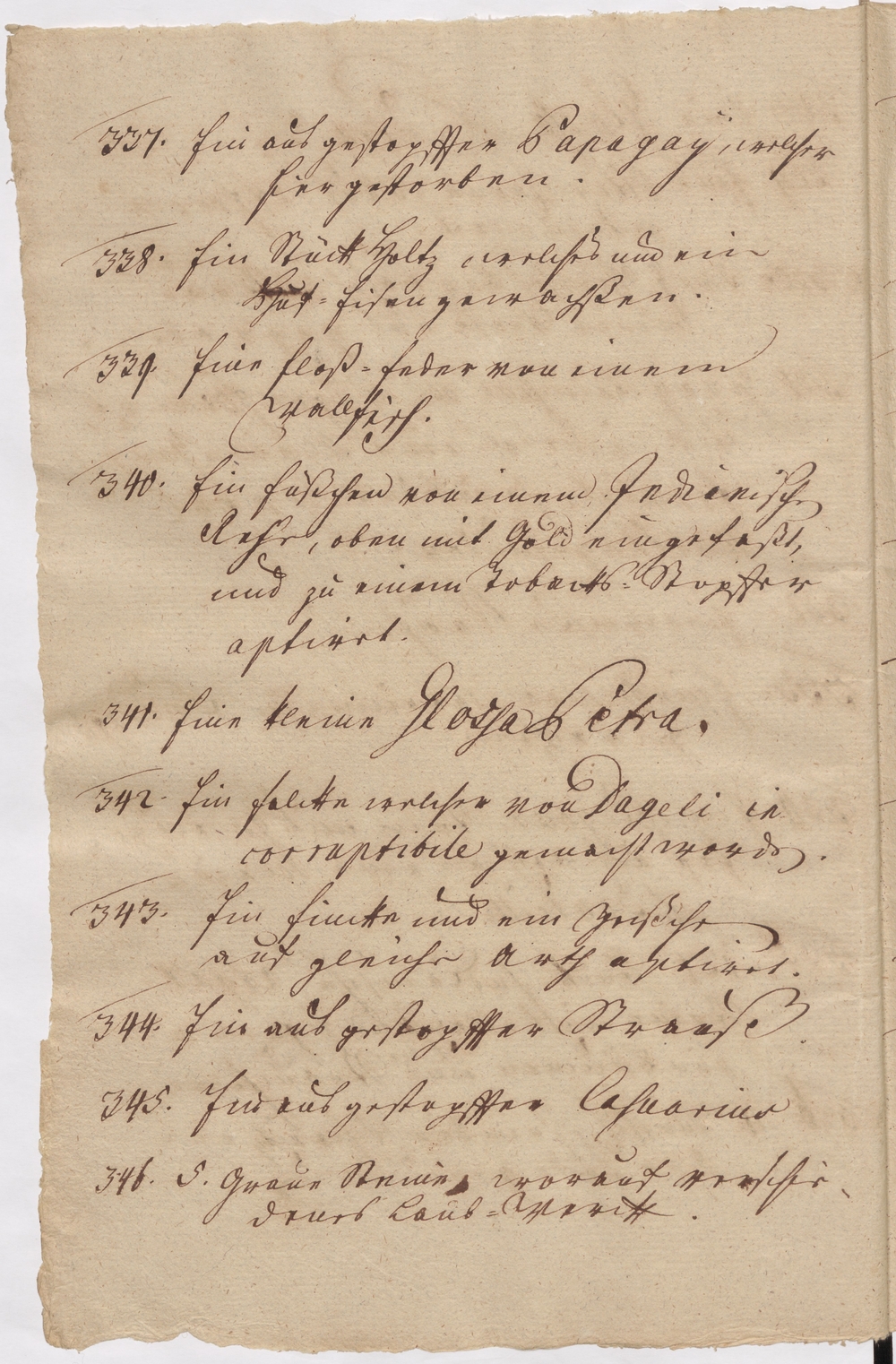 337. Ein ausgestopffter Papagay, welcher/ hier gestorben./