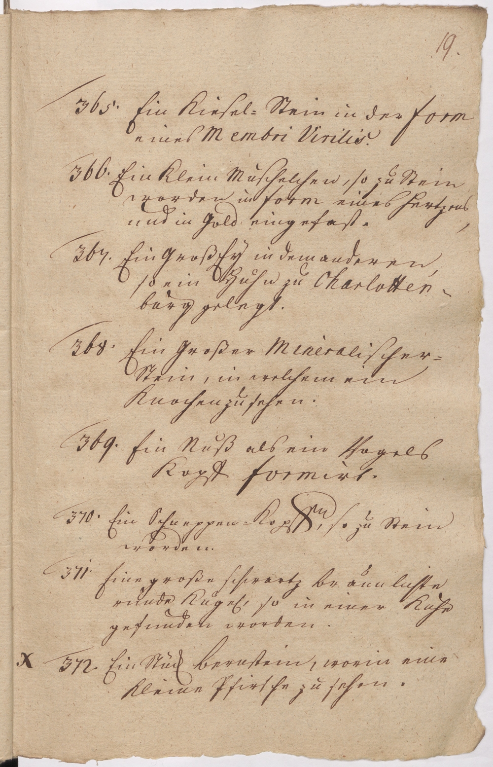 x 372. EIn Stück Bernstein, worin eine/ kleine Pfirsche[?] zu sehen.