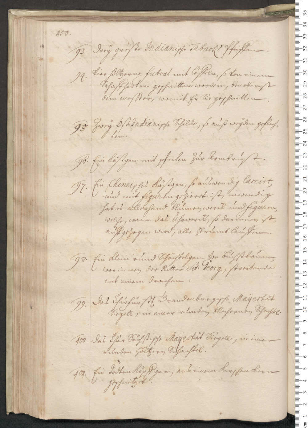97. Ein Chineisches Kästgen, so auswendig laccirt,/ und mit figuren gezieret ist, inwendig/ hat es allerhand blumenwerck und figuren,/ welche, wann das Uhrwerck, so darinn ist,/ auffgezogen wird, alle herumb lauffen./