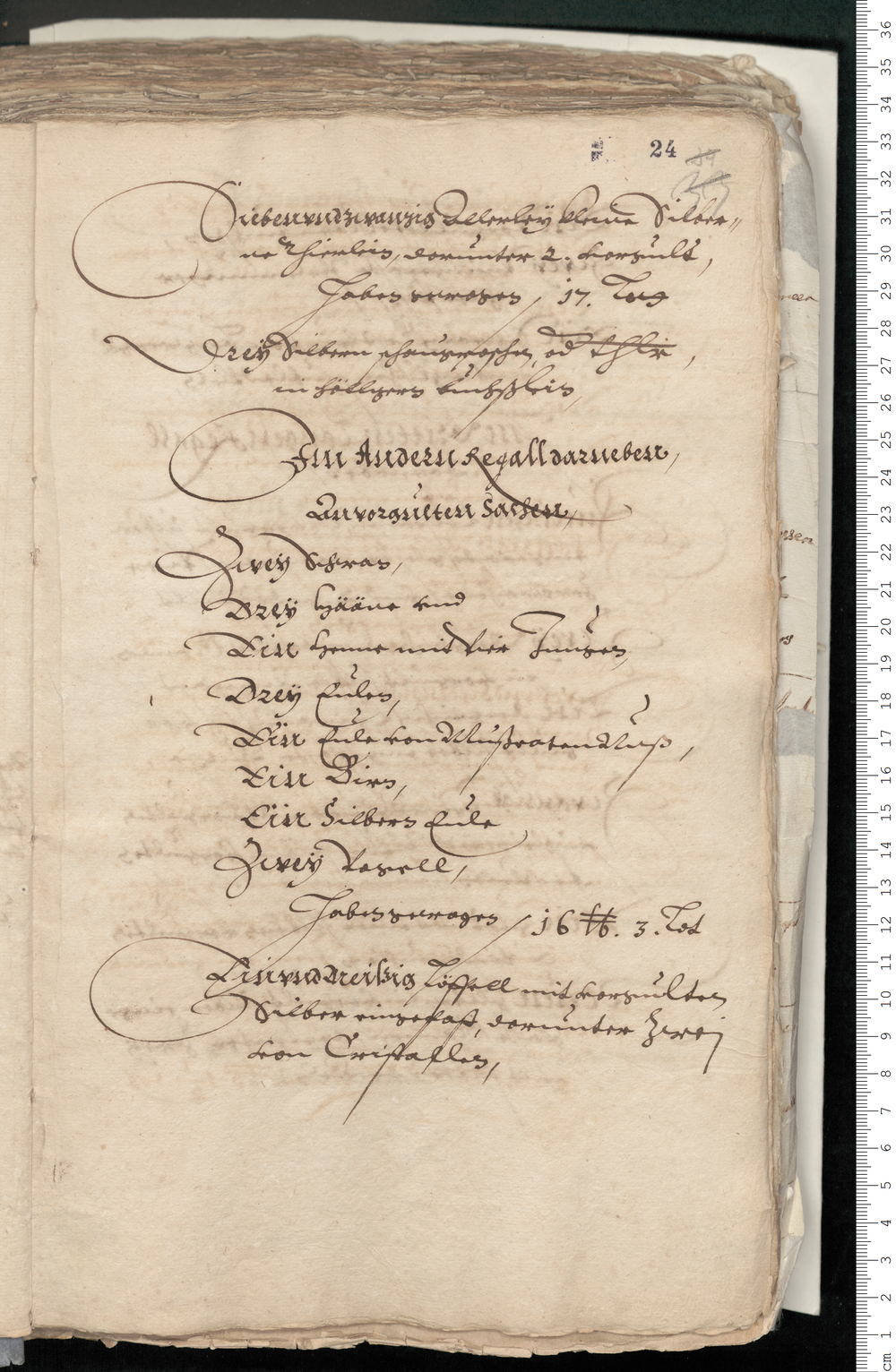 einunddreiszig löffel mit vorgulten/ silber eingefast, darunter zweij/ von cristallen,