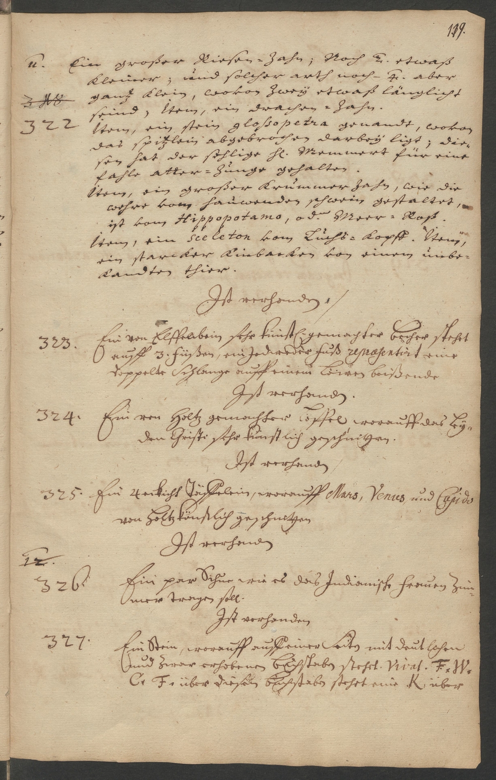 Item, ein sceleton vom Luchs-Kopff. Item,/ ein starcker Kinbacken von einem unbe-/kandten thier.