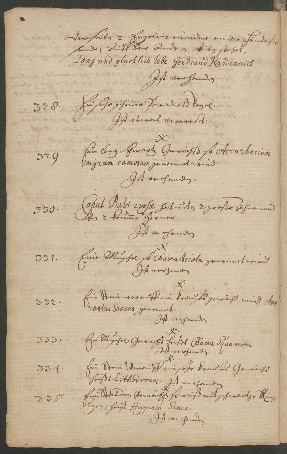 X/ 332. Ein Stein worauff ein krauses Gewächs, wird Ama-/rantus Saceus genennet./