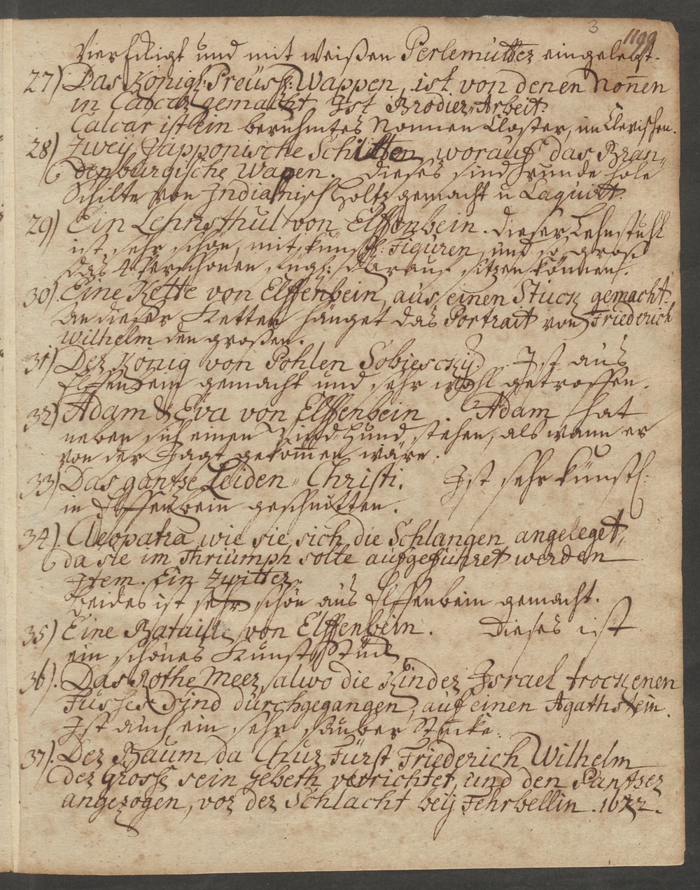 30. Eine Kette von Elffenbein, aus einem Stück gemacht./ [Ergänzung:] An dieser Ketten hänget das Portrait von Friederich/ Wilhelm den großen./