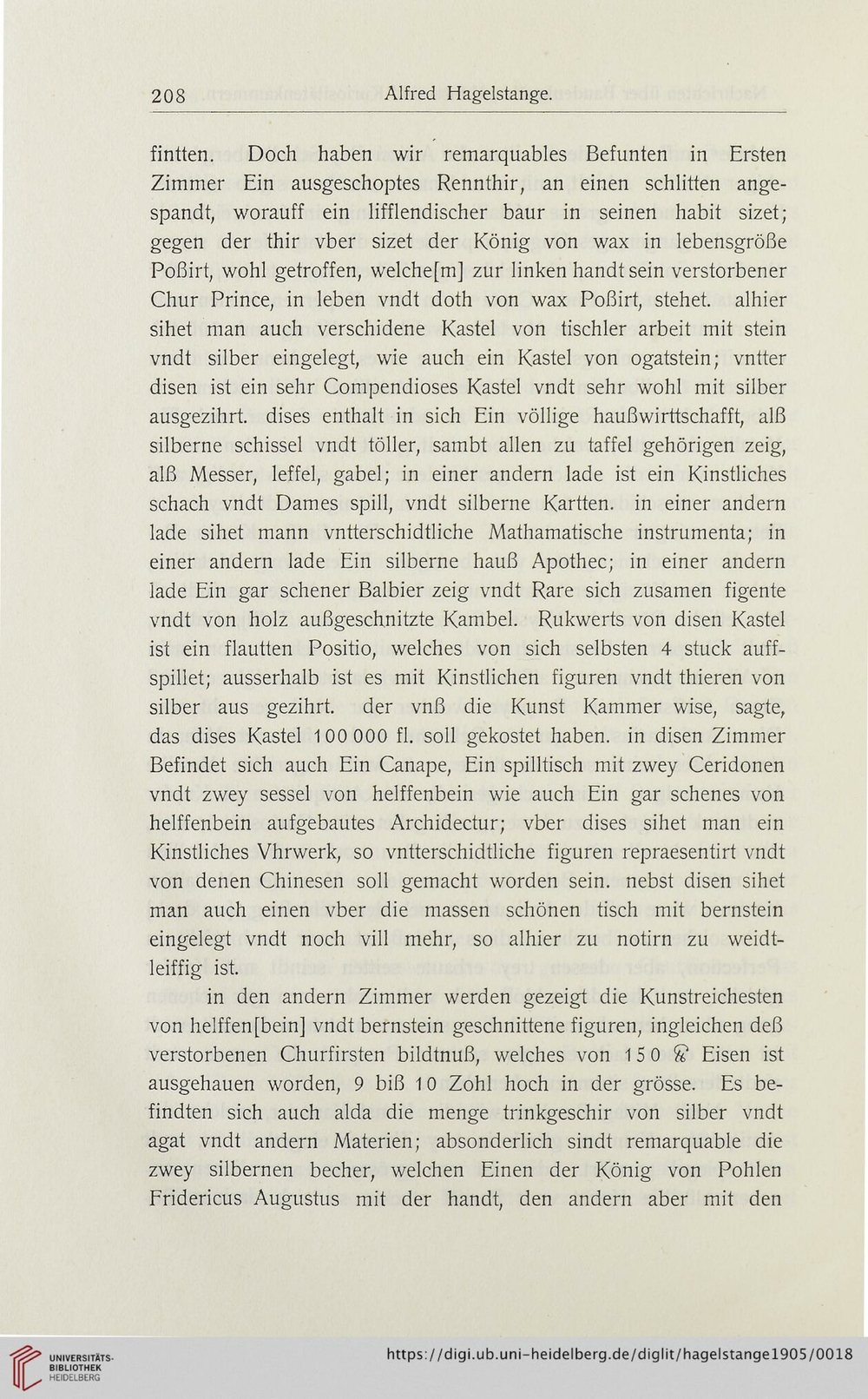 [...] der vnß die Kunst Kammer wise, sagte, das dises Kastel 100 000 fl. soll gekostet haben